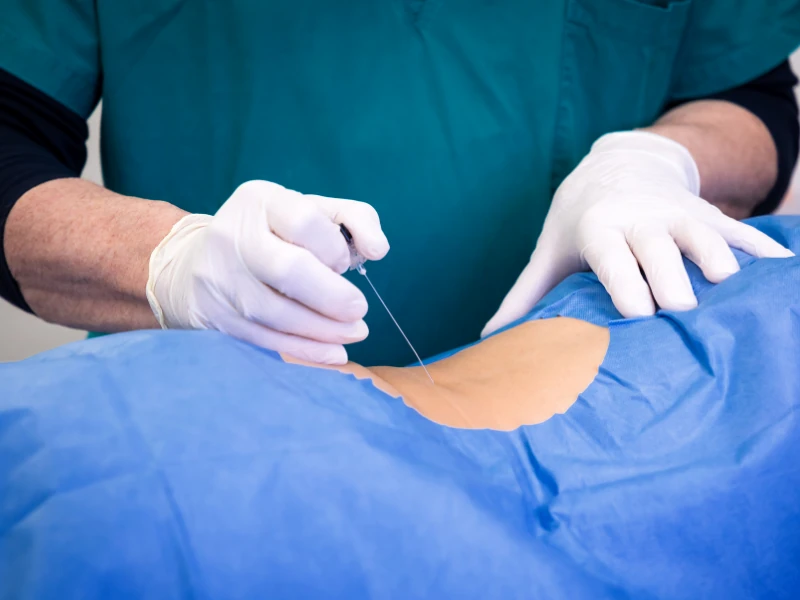 Il medico individua poi il punto corretto di ingresso nell’articolazione. Nelle sedi superficiali, come il ginocchio, l’accesso può avvenire attraverso riferimenti anatomici ben definiti. Nelle articolazioni profonde, come l’anca, l’uso dell’ecografia permette di visualizzare in tempo reale l’ago, aumentando la precisione e la sicurezza del gesto.